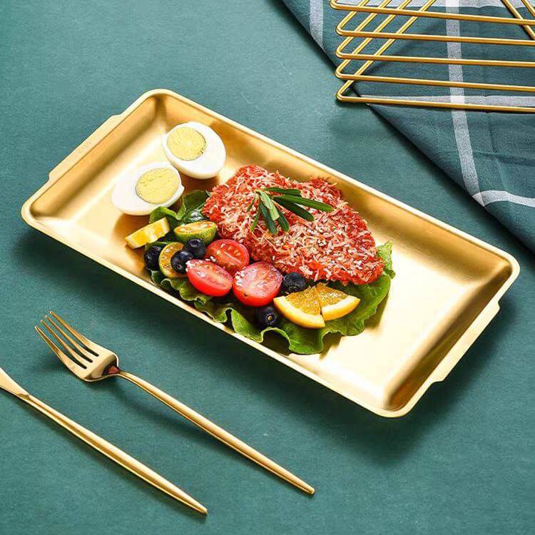 سرافيس عشاء ذهبية من الفولاذ المقاوم للصدأ ، أطباق تقديم ، صينية كعك بيضاوي ، أطباق ستيك غربية ، مختلفة الحجم ، كمان حلوة لتقديم الحلويات و السوشي في المنزل