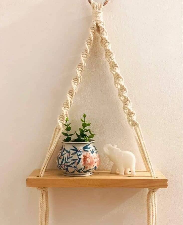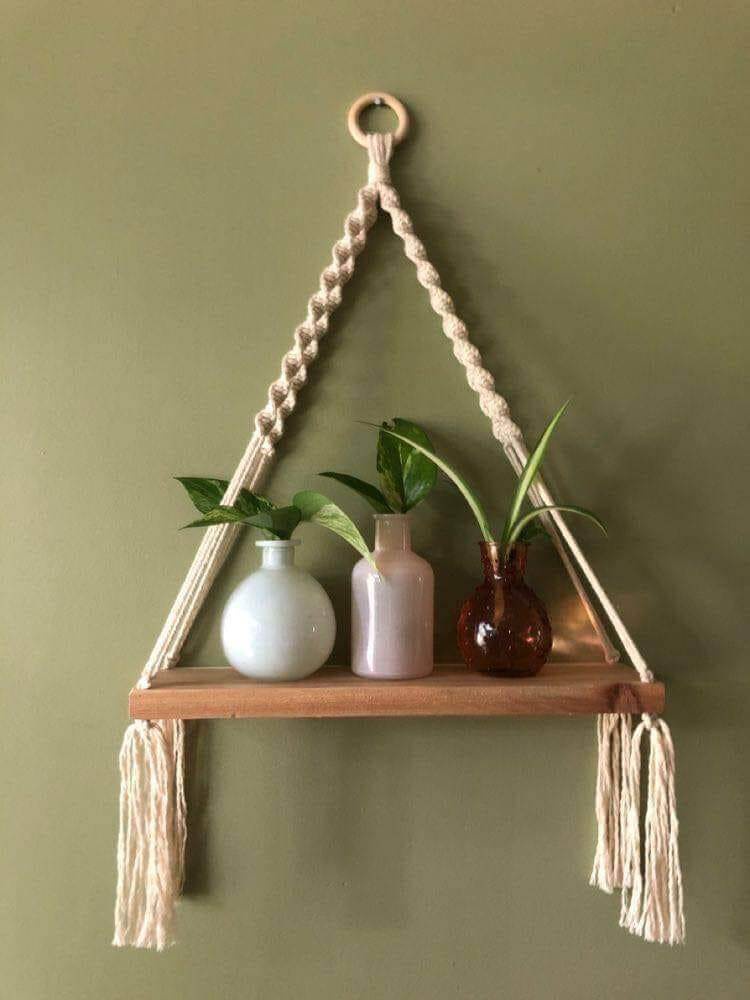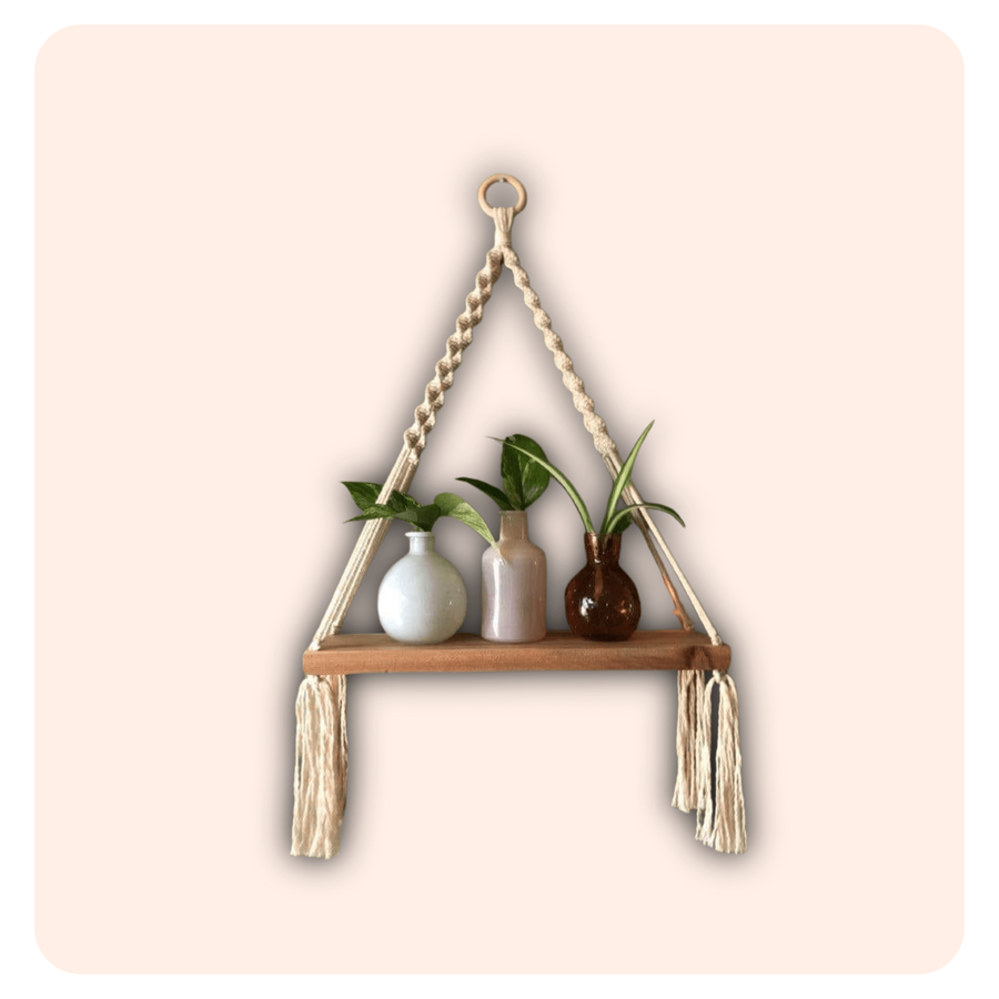 رف مكرمية مصنوع من خشب الزان بجودة عالية، يمنح بيتك لمسة ديكور راقية وعصرية. تصميم مميز يناسب أي مساحة.