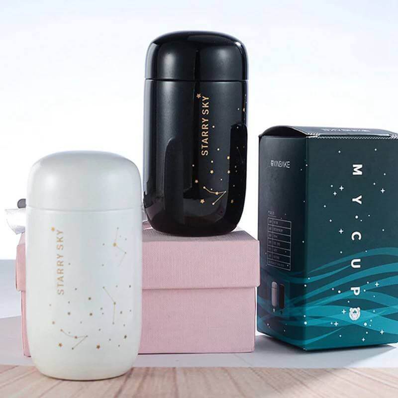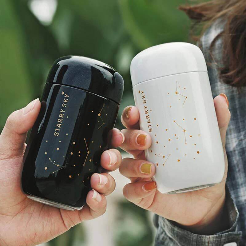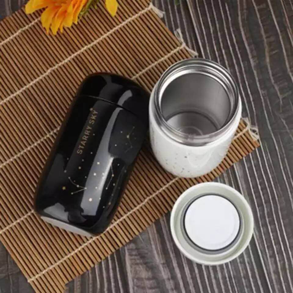 احتفظ بمشروباتك ساخنة أو باردة مع ترمس Starry Sky بسعة 200 مل، تصميم عالي الجودة من استانلس 304 الصحي يضمن العزل المثالي لفترة طويلة.