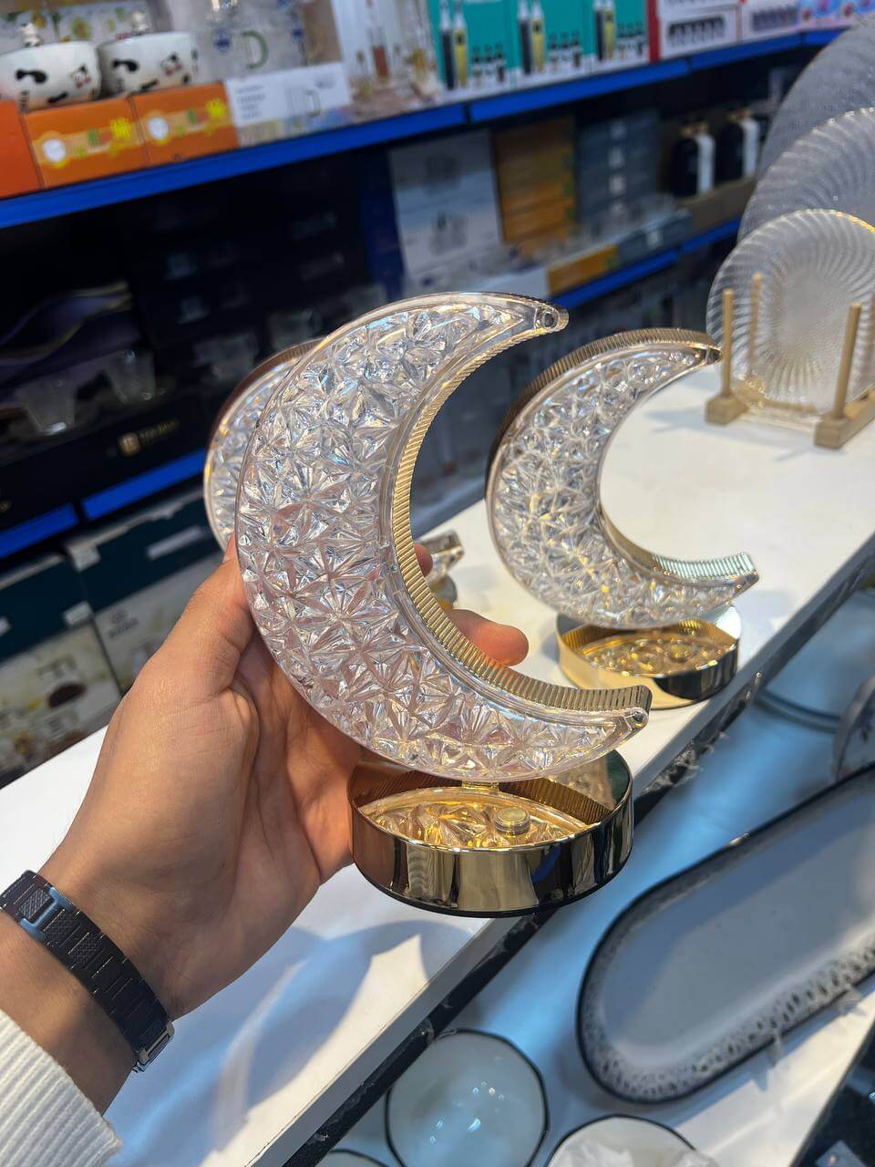 اباجورة كريستال هلال تاتش تعمل بالشحن USB، متعددة الألوان مع 3 مستويات إضاءة، تصميم أنيق يضيف لمسة فنية وديكور عصري لأي مكان