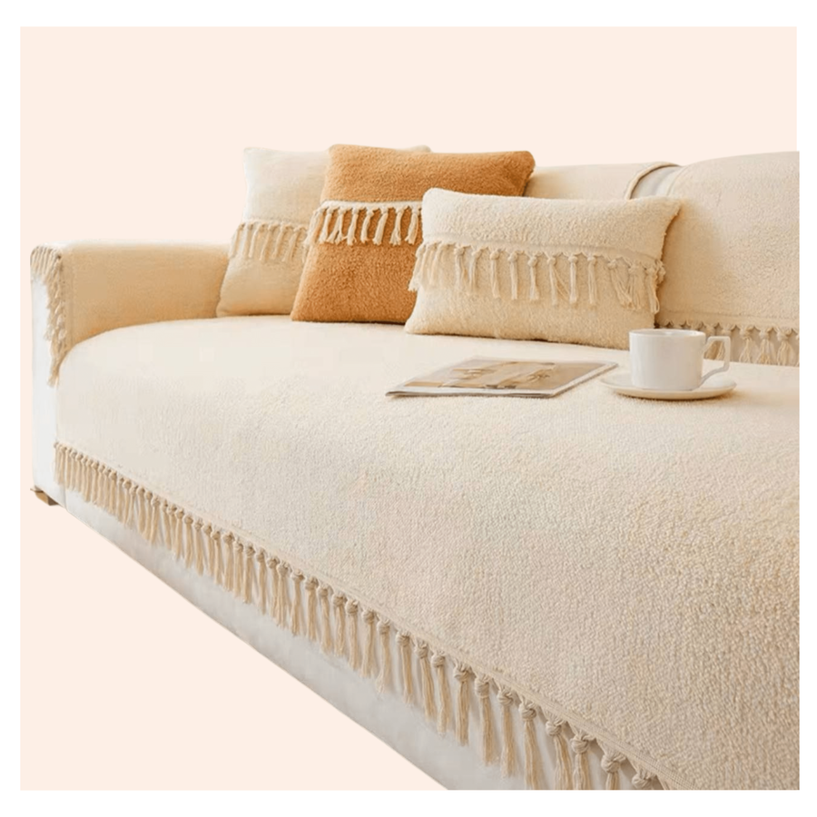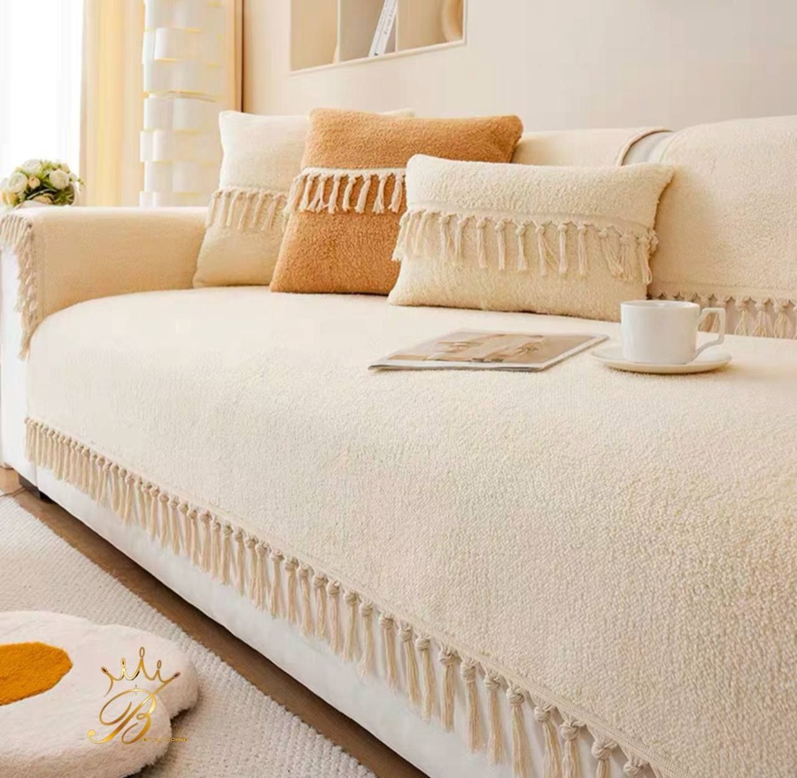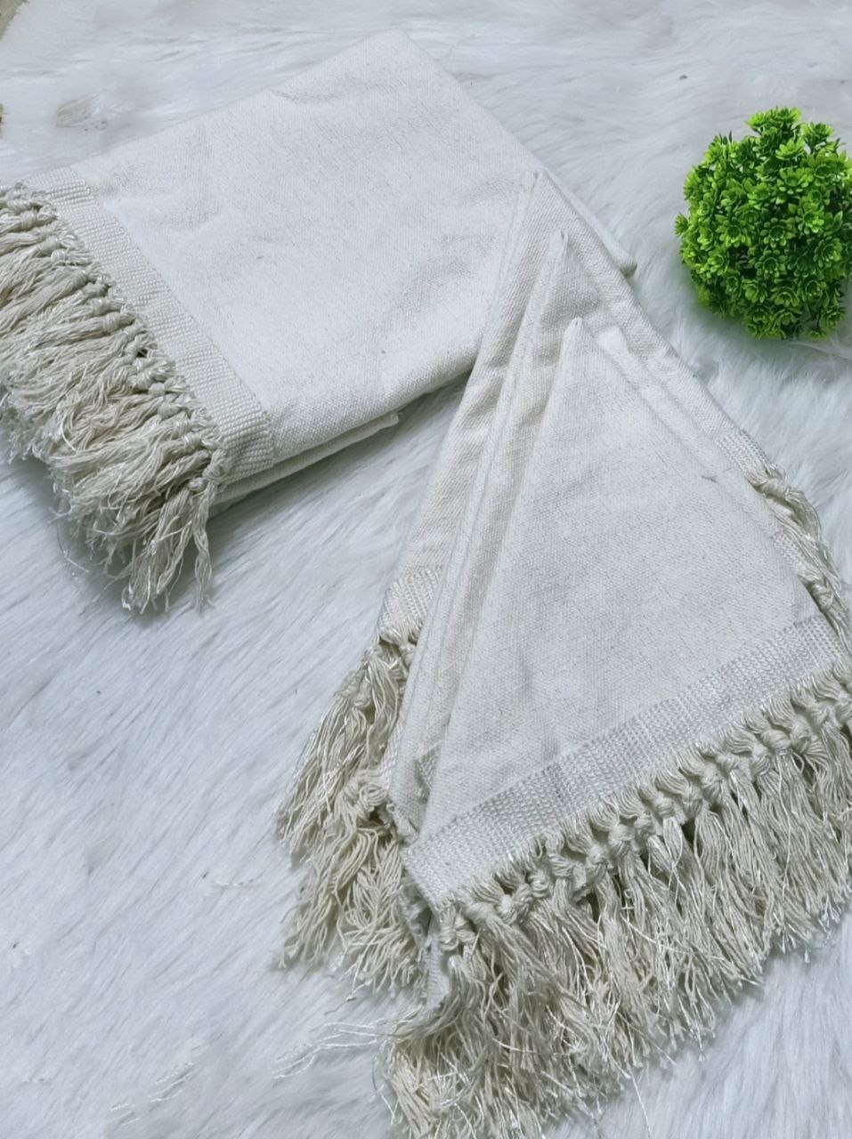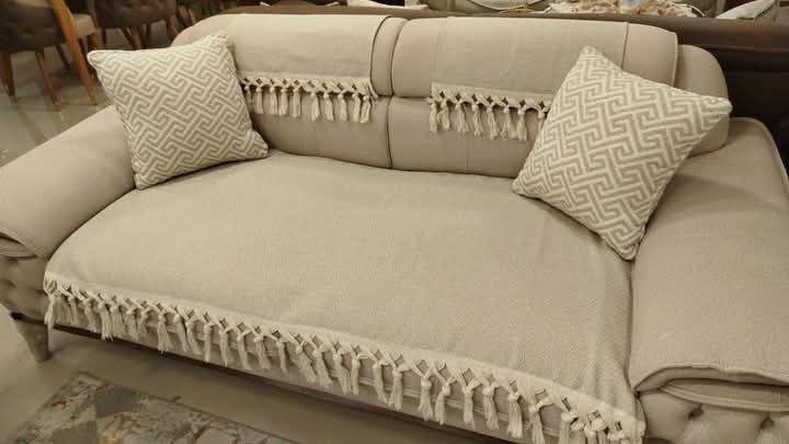 طقم الكنبة الياسمين خامة كتان مناسبة للصيف والشتاء، تصميم راقٍ بكنار رُكّامة، يحتوي على كنبة كبيرة و3 مناديل. جودة وسعر مناسب لمظهر أنيق في بيتك
