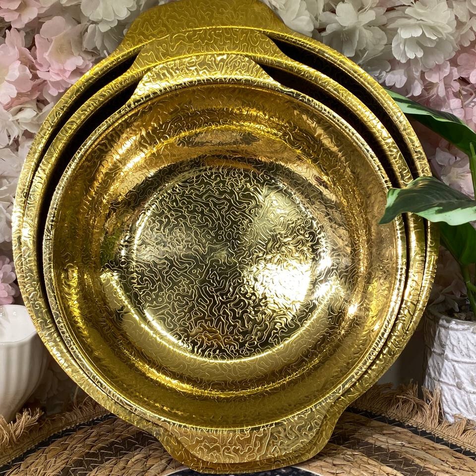 طاسات تقديم نقش عربي – فخامة ولون دهبي ثابت