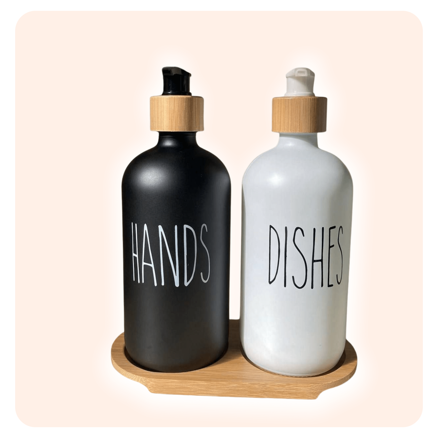 طقم دسبنسير زجاج بحامل خشب