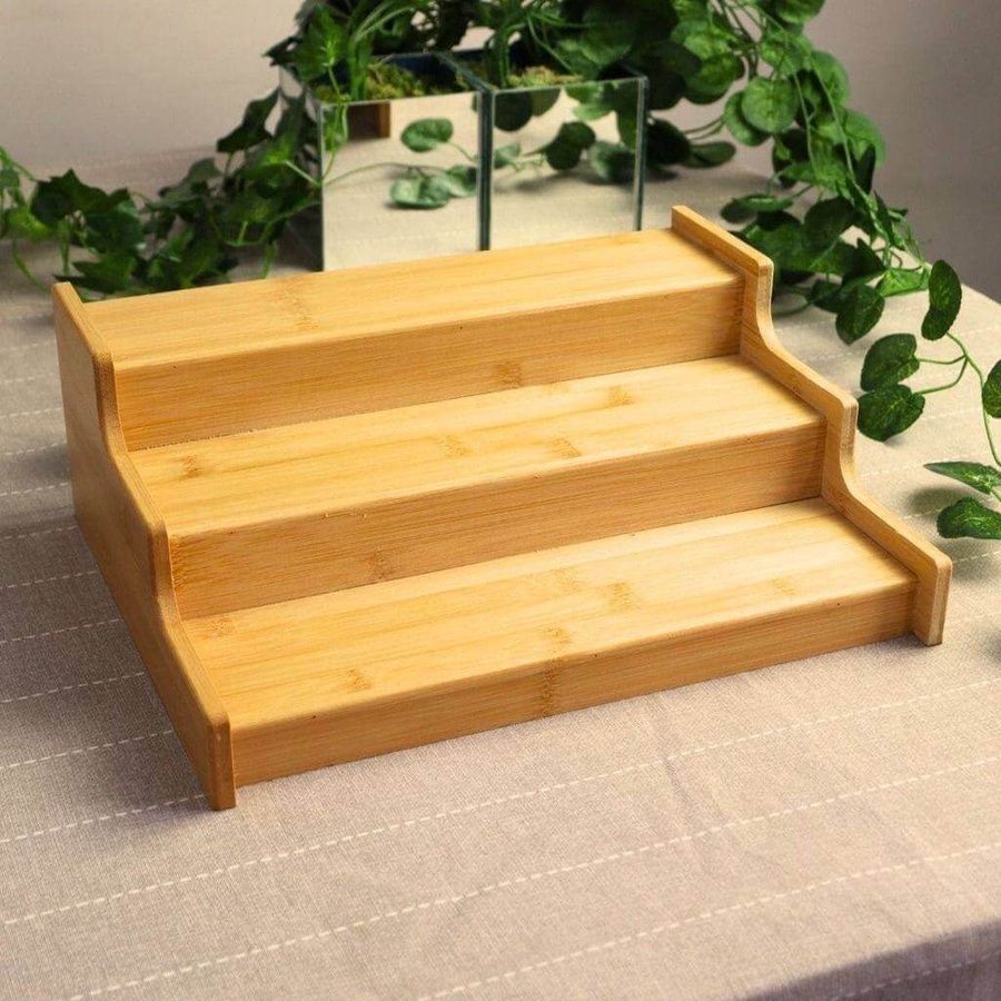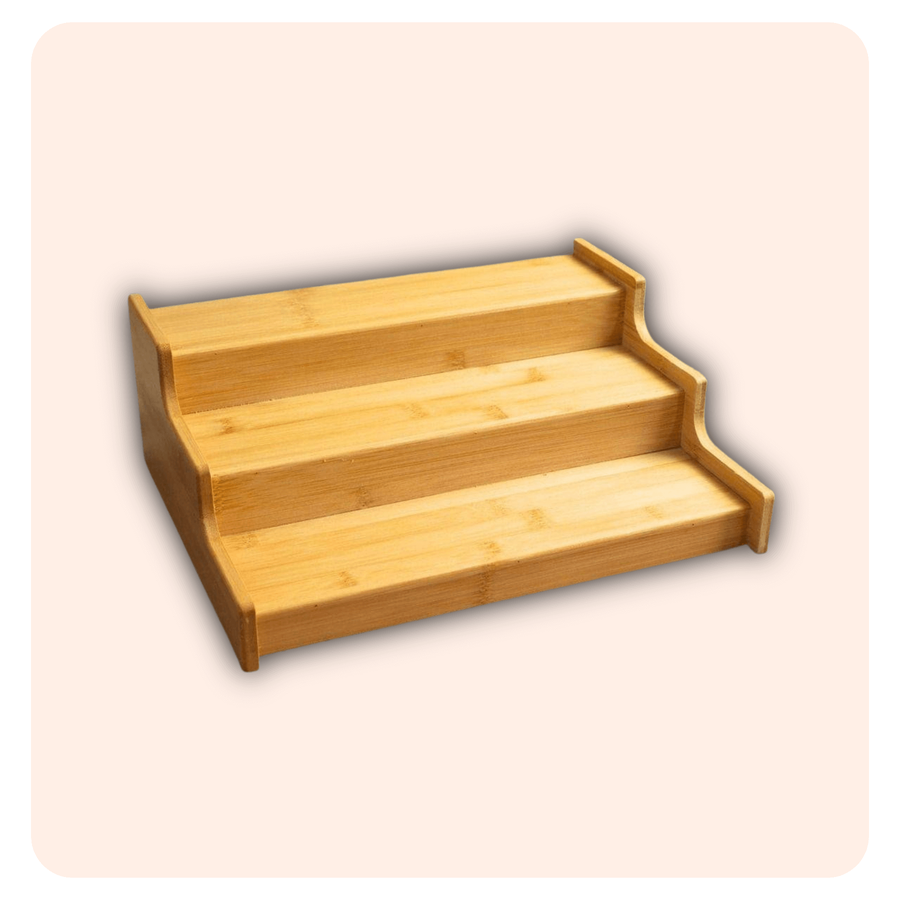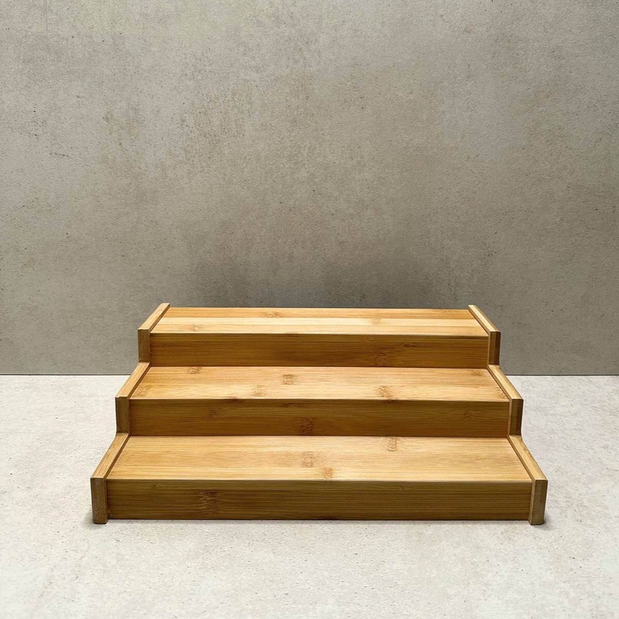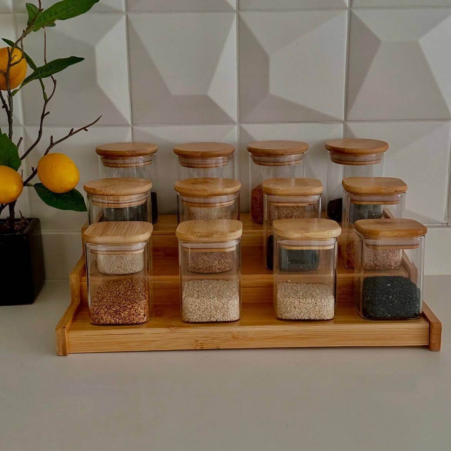 سلم ومنظم برطمانات خشب بامبو ثابت للمطبخ، يتسع لـ18 برطمان بمقاسات مختلفة. الحل الأمثل لترتيب التوابل والبهارات بسهولة وأناقة.