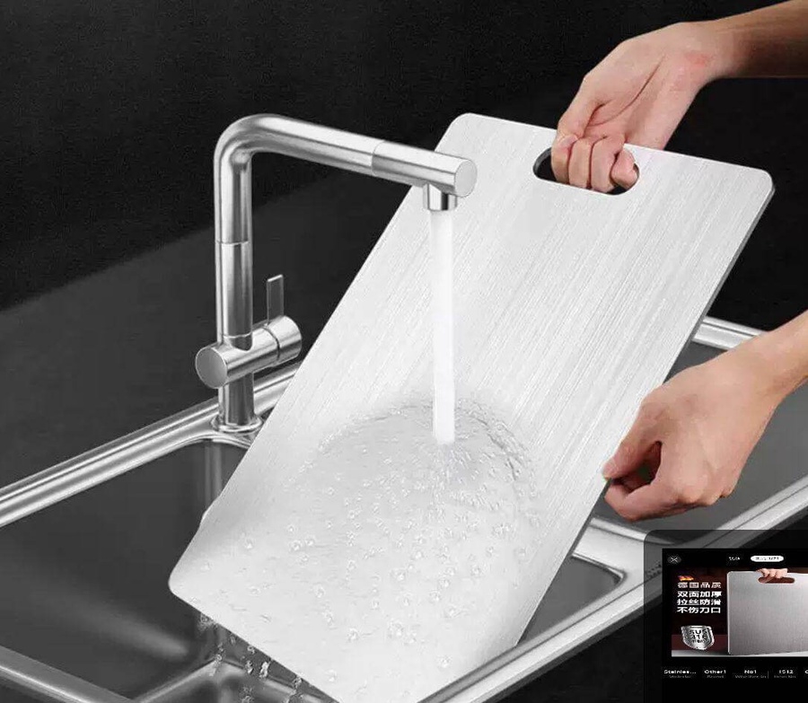 بلانشة تقطيع استانلس مقاومة للصدأ والبكتيريا، لا تمتص الروائح. مقاس 25×36 سم بسمك 1.5 سم، متينة وعالية الجودة للاستخدام اليومي